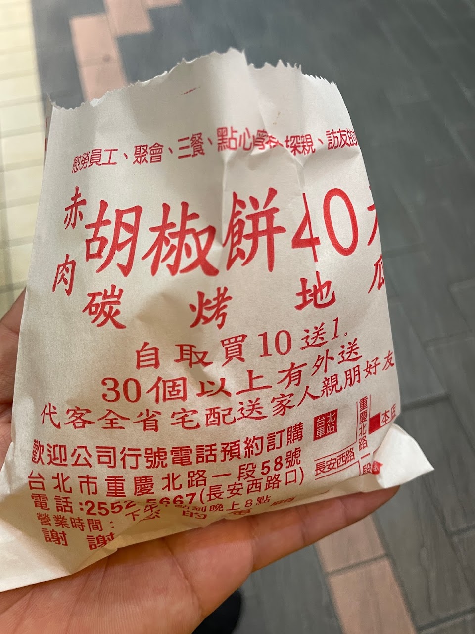 因為參加台北燈節活動,趕快來吃胡椒餅,位子非常醒目,排隊人潮眾多,買回家時候還熱熱的,餅皮偏比較乾式的。