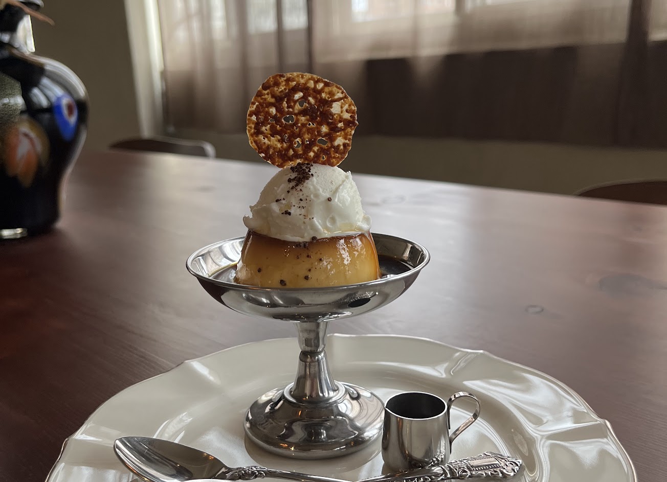布丁(120元) 吃起來普通,介於布丁跟布蕾之間的口感, 蠻小一顆的,盤子裡的醬偏苦, 搭配布丁本體不會太甜~ 但整體就是普通,沒什麼特別的~