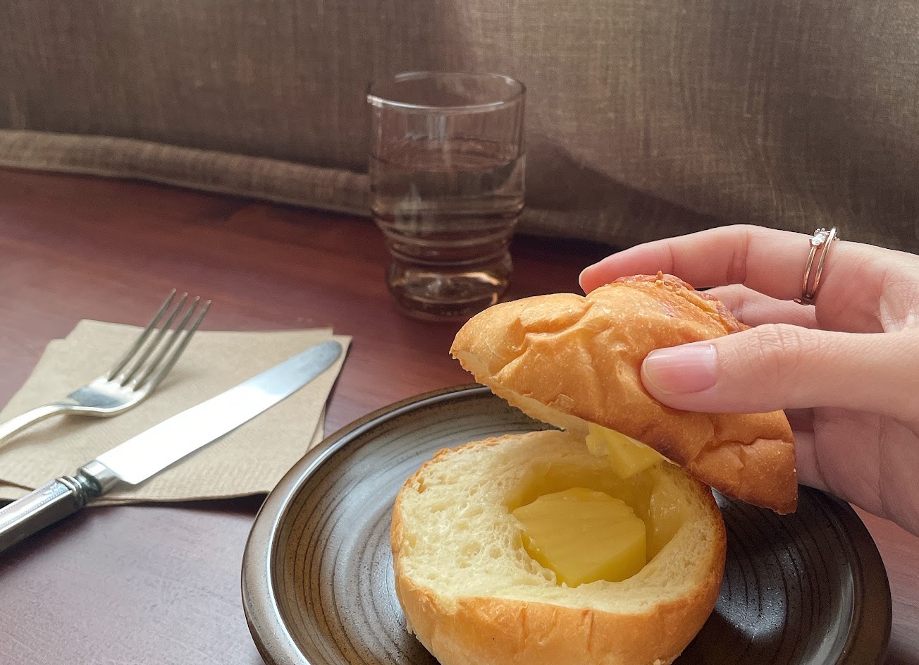 ?乳酪麵包剛烤好很香,裡頭有起司,也不錯。