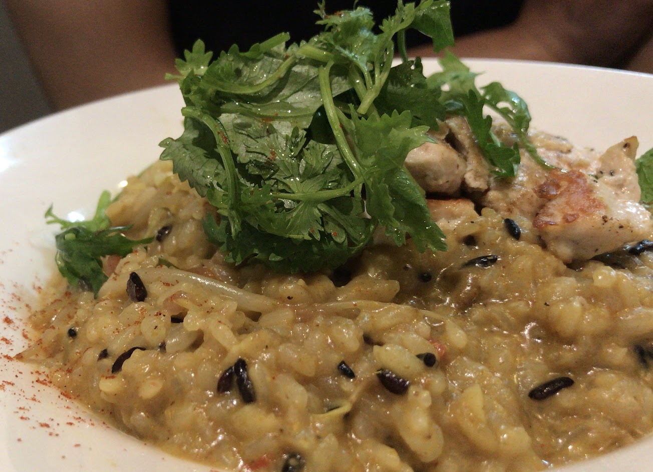 商業午餐價位中等、份量剛好。燉飯屬於長形飯偏硬,口感濕潤,味道稍淡。鬆餅好吃。中午用餐時間人很多,室內空間較吵雜。
