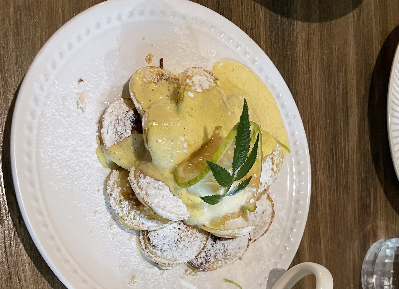 我吃檸檬的小鬆餅,整體CP值不錯,除了醬料還會搭配一球冰淇淋在上面,不過可能因為顏色跟檸檬醬一樣,所以一開始沒注意到,吃到一半才發現?
