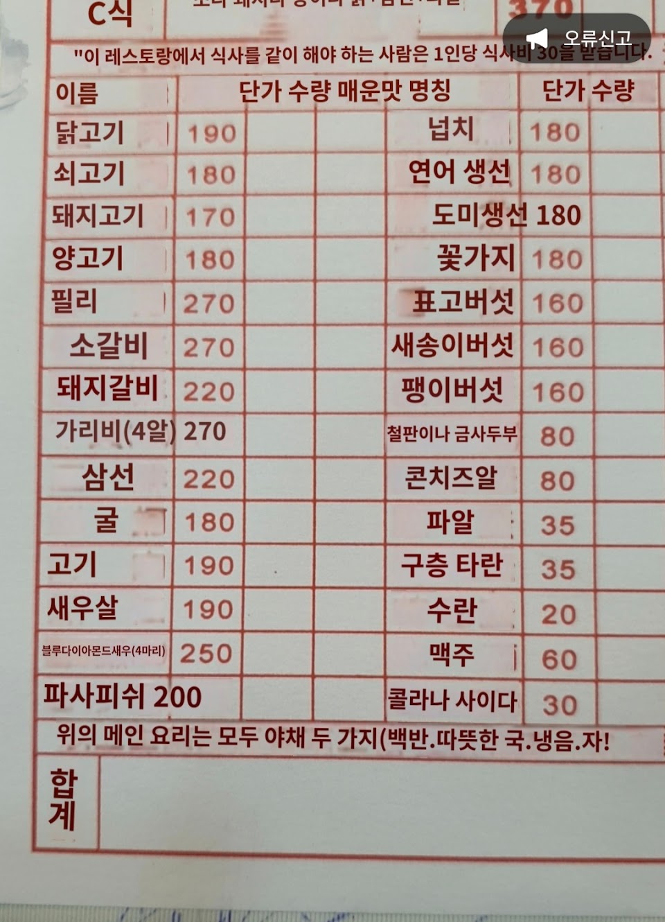 沒有韓文菜單,所以我通過翻譯點了餐。