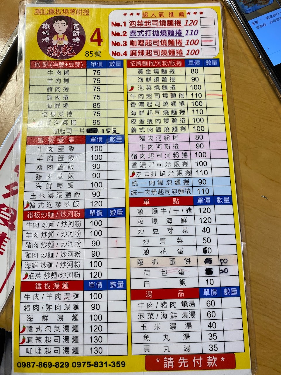 2024最新在地推薦餐廳的菜單_鴻記鐵板燒蔥餅捲的菜單、圖片