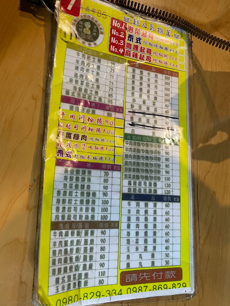 前天來逛,點了一份泡菜燒麵卷100元,本來拿單子在看準備要劃,在前面炒的那個男老闆就有點兇的問你外帶還是內用,我說外帶,他就回:外帶直接跟裡面點就好不用劃(有點兇),