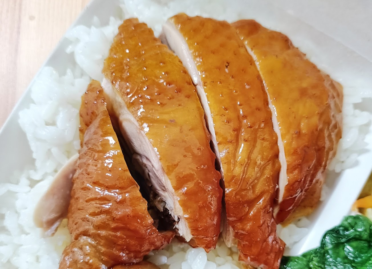 鹽水雞、燻雞皆肉質軟嫩,些微油潤卻不膩口,香氣淡雅,鹽味帶甜,調配適中,不愧招牌之名。 臘肉表現也佳,口感不會太硬,一經咀嚼,小油塊便在嘴中散開,越吃越香。 最令人驚艷的卻是燒肉,風格清新,薄切不油膩,外裹一層深咖啡色粉,初嚐只覺得味道特異於其他店家提供之燒肉,吃到後面才醒覺,這是肉桂的氣味。首次吃到平價便當店以肉桂入味,深深感受到店家用心。