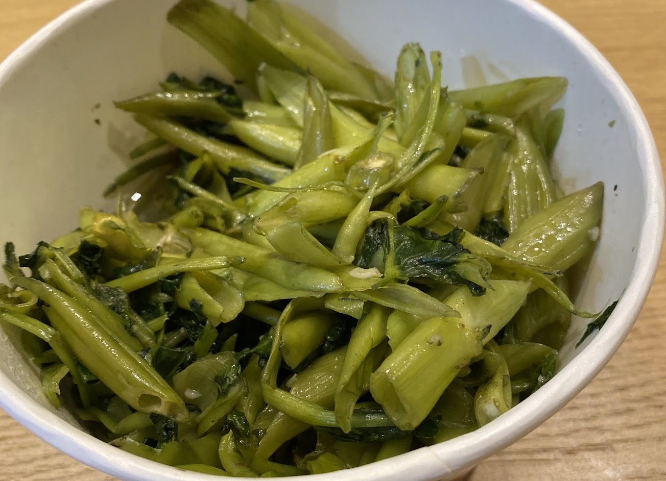 外帶的青菜只有菜梗,而且菜梗的邊緣黑掉或不規則裂開。