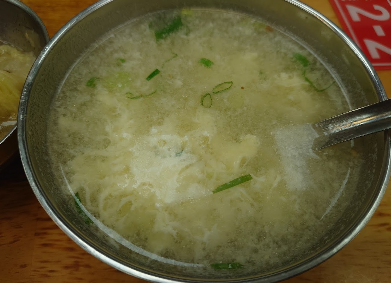 紫菜湯,油且甜不鹹香,湯體混濁漂浮物過多,紫菜中有洗碗菜瓜布的絲?