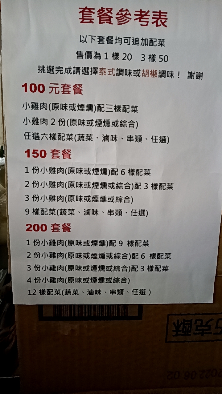 Chicken is much too dry (smoked flavor)… Veggies are decent. Instructions also quite unclear. 煙燻口味雞肉蠻乾柴的,蠻失望。胡椒選一半但是蔬菜還是幾乎都只有胡椒味。不知道原味雞肉怎麼樣,但是如果真的還有再去可能只會點蔬菜。 雞肉$60 其他$20 套餐就只是先幫你算好價錢: $100可以買雞肉+2種配料 *OR* 5種配料。 不推薦 2023.06 服務 外帶 餐點類型 晚餐 平均每人消費金額 $1-200 餐點:1 服務:2 氣氛:2