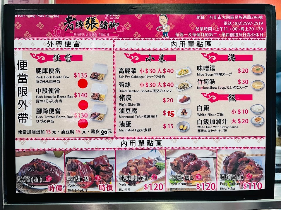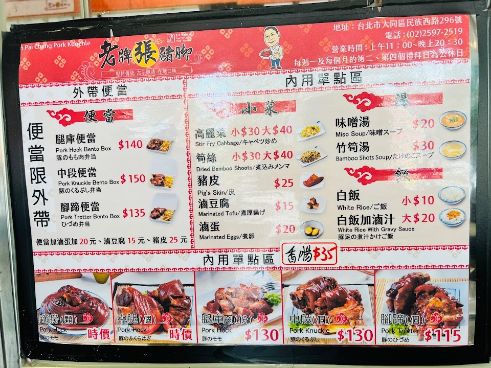 2024最新在地推薦餐廳的菜單_老牌張豬腳飯的菜單、圖片