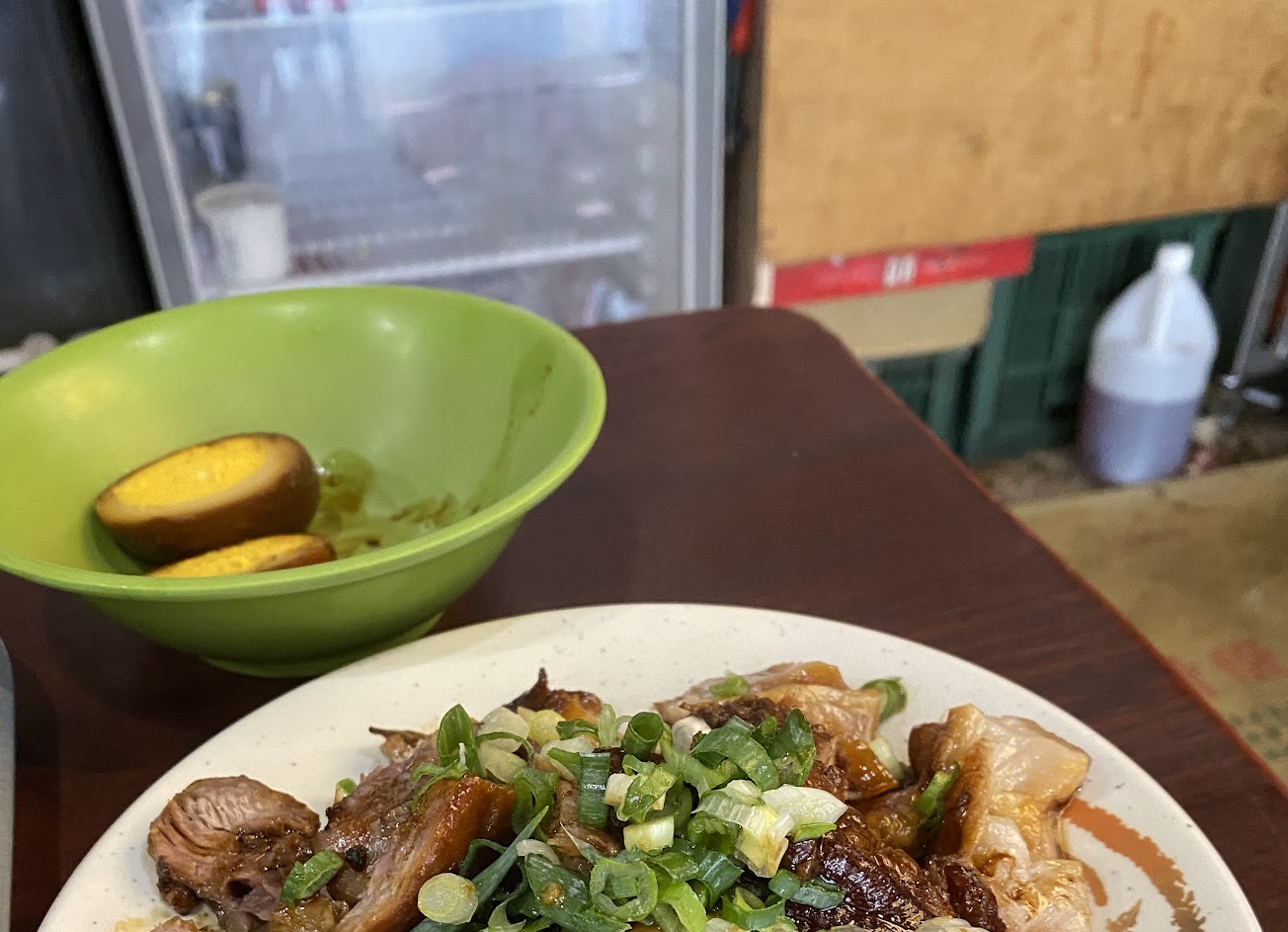 門口永遠有人排隊的店。可以把油膩的肥肉,做到如此油又好吃,很不容易,瘦肥肉豬皮都各有口感層次~點110元腿庫,豬皮層醬色上得深厚油到發亮,其實不鹹,鹹甜醬味都偏淡,口味適中,而肥肉膠質和稠化的醬汁黏在一起軟爛,在舌間化開很療育,沒有油膩反胃感,而瘦肉不柴一咬就碎,搭配蔥花,簡直白飯殺手