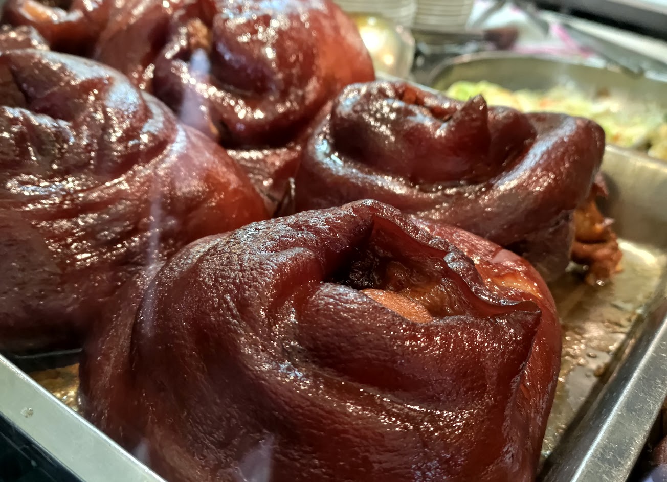 他的豬腳可依需求喜好選擇不同的部位,豬肉滷得軟爛入味,香氣迷人,且不油膩,非常有媽媽的味道,用餐的時間經常大排長龍,一位難求,建議選擇離峰的時間前往,才不會等得太久。