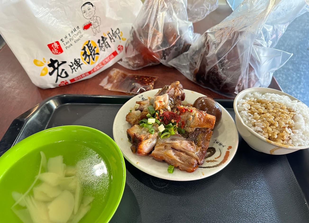 延平北路三段大橋頭附近的老店,每到用餐時間都要排隊的名店,就只有豬腳的不同部位,再加上幾個小菜、味增湯、竹筍湯、白飯、滷汁白飯,就可以熱銷多年。