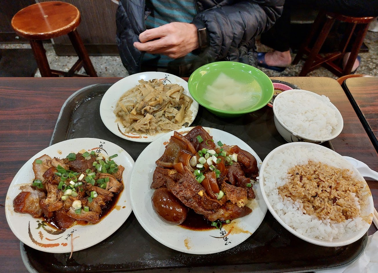 每次路過都看到排隊人潮 吃了後稍失望 軟嫩度足 但沒有香氣滷汁也普通 白飯淋醬也沒有豬油香 飯粒也太乾硬 配菜都要另外加點 單價過高 不過店員服務挺好 只是捧著餐盤入座位置擁擠湯都會灑了