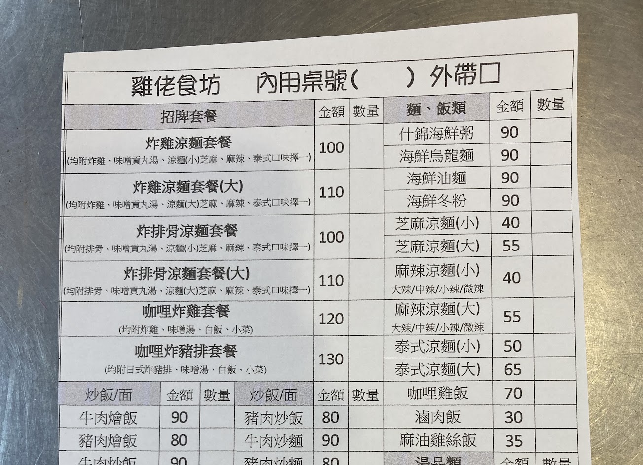 一個大的炸雞涼麵套餐只要110
