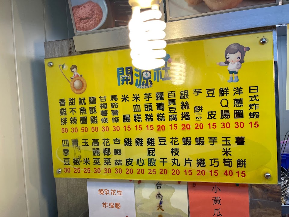 嚐鮮雞排很便宜 老實說吃起來很失望 銀絲卷20元 失望因為裡面竟然還是冷的…. 台南大餅20元好吃推薦 炸高麗菜30元第一次試吃 特別酥脆 雞皮20元炸完顏色很深以為很焦 軟硬適中 藕巧15元也好吃 價位與份量很划算