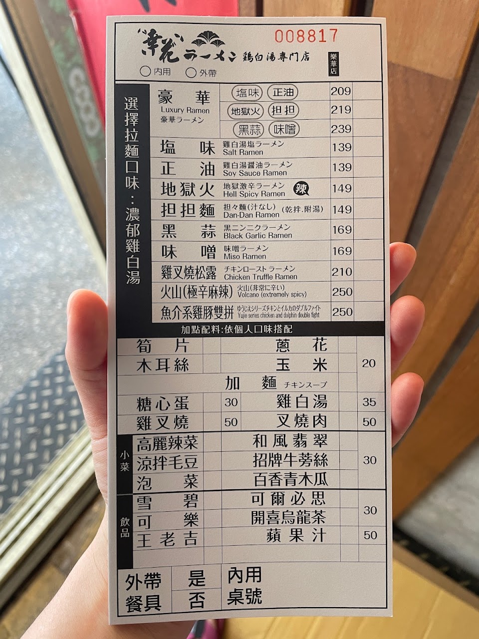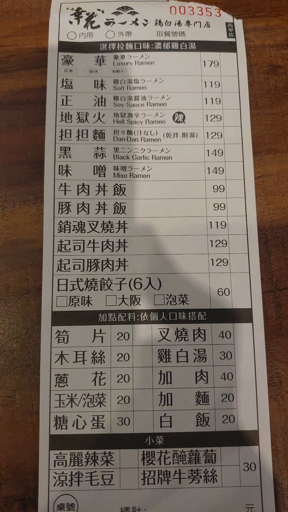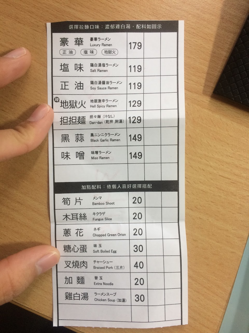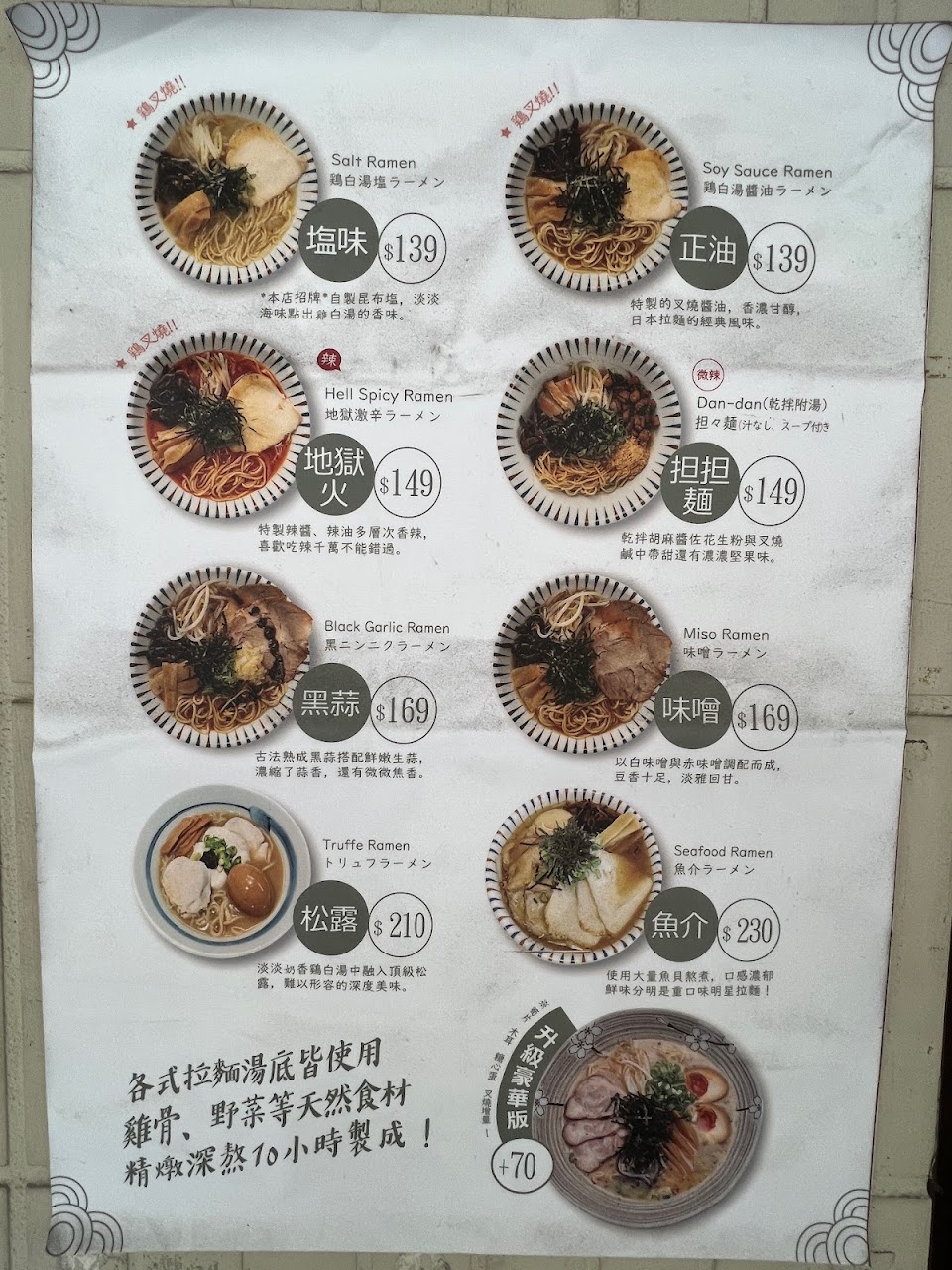雖然說是路邊的小店,但是還是提供許多日式拉麵店該有的餐點選項,相較於動輒200起跳的拉麵店價格來說,約莫150一碗的拉麵顯得相當平實,另外也接受Line Pay及街口支付,即使身上現金不夠也可以吃得很滿足。