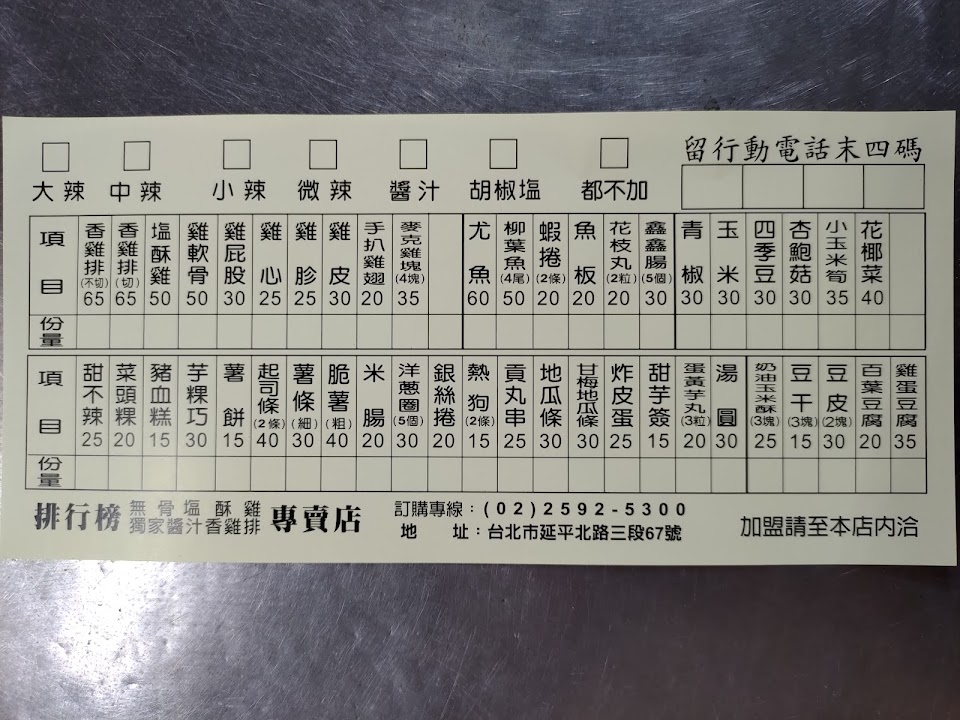 唯獨是老闆一人獨撐天下,要炸又要備料,所以可能是需要等一下,但老闆已經努力埋頭苦炸了,攤位前有單子,自行劃單後留下四碼,等老闆叫號~週三和週六休息!