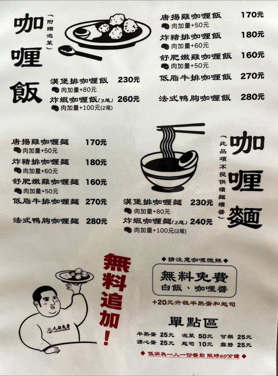 飯、咖哩可續加,適合吃粗飽,咖哩普普,打卡送半熟蛋、起司或小瓶可樂
