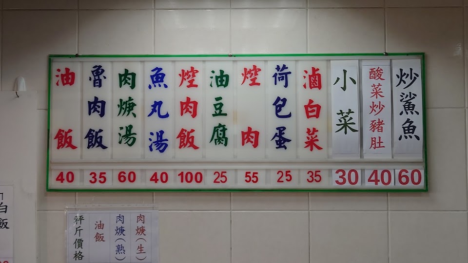 油飯和小菜 荷包蛋 三角豆腐 滷肉飯 油飯 荷包蛋魚丸湯 白菜魯 白飯 荷包蛋 滷肉飯 鴨蛋 甜辣醬 招飯