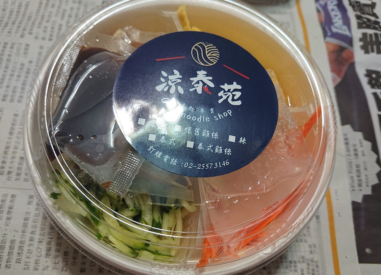 泰式涼麵好吃,乾淨清爽,店家有用分層區隔配料,讓蔬菜保有脆度,蛋皮也不會因蔬菜受潮。