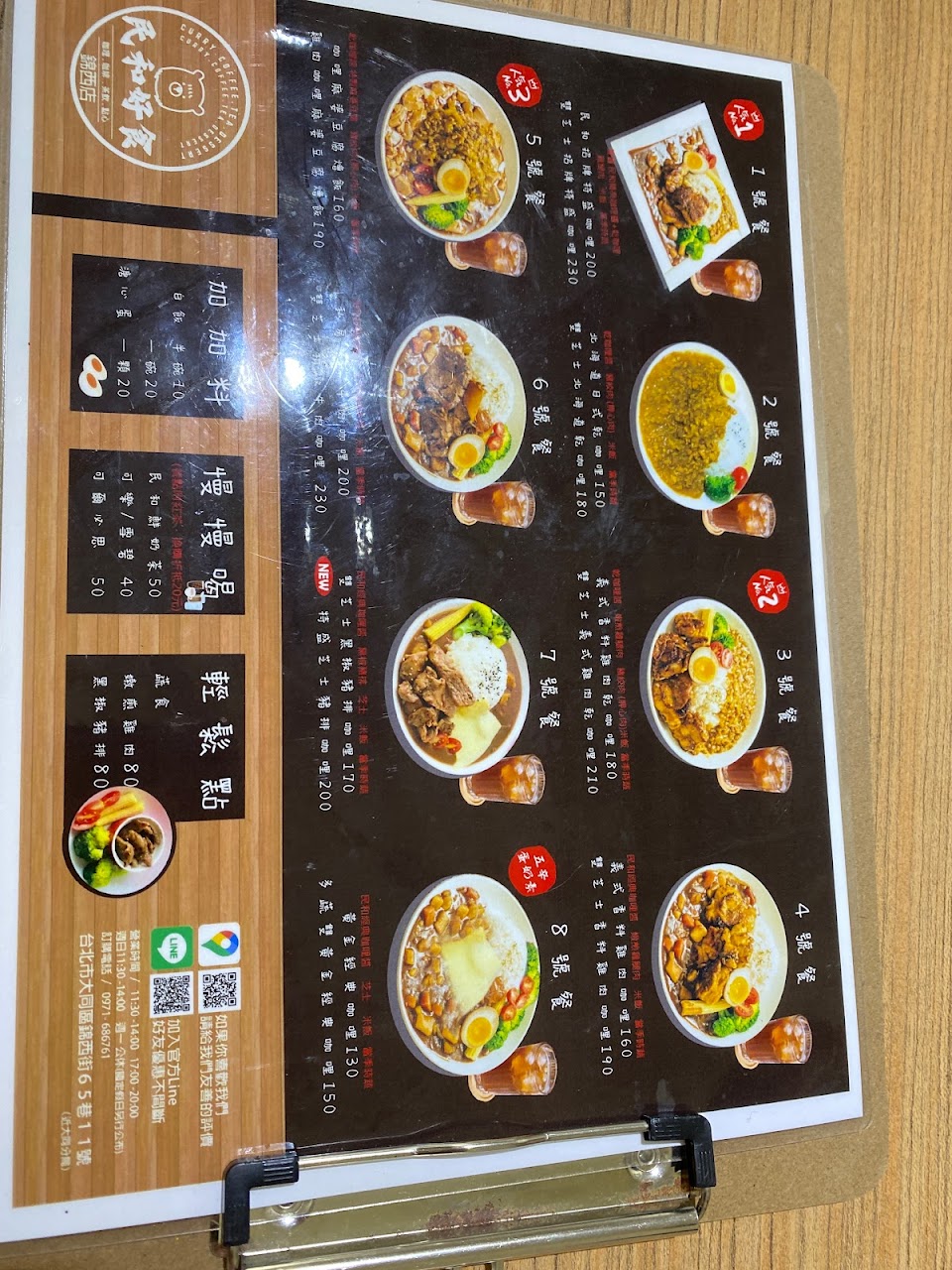 咖哩#1 是兩種咖哩的組合。用牛肉代替雞肉,需要額外支付 40 新台幣。咖哩是 4/5,但服務非常好。多加5元得到大冬瓜茶