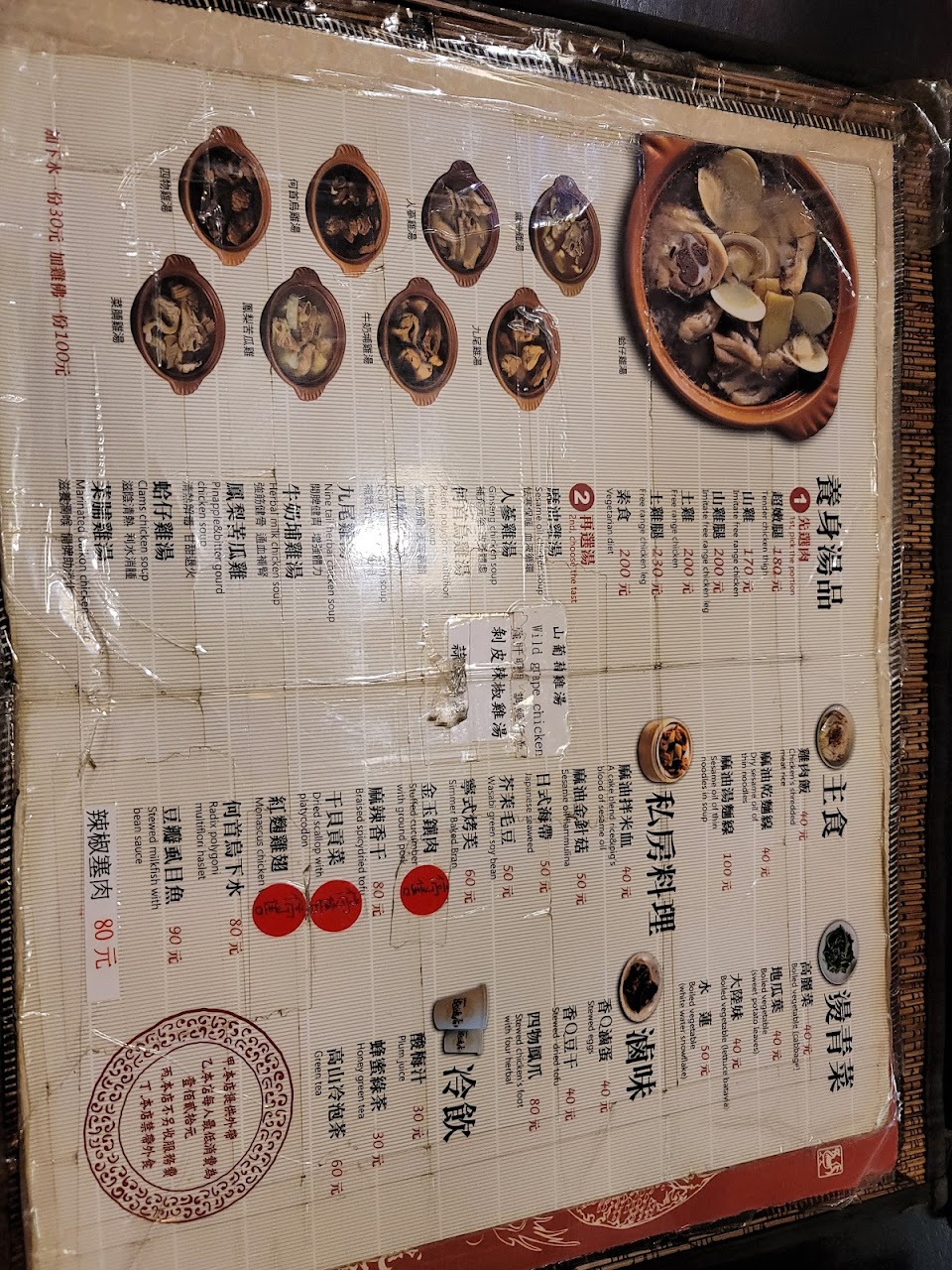 裝潢頗具特色是亮點,餐點點了鳳梨苦瓜雞湯、蒜頭雞湯(都選超嫩雞)加上幾樣小菜。雞湯味道不錯,但雞肉真的骨頭太多了!吃的很不涮嘴;麻油麵線可以吃,不會爛麵、麻油也很香;麻油米血和豆瓣虱目魚都冷冷的,不知道是廚房趕著出菜還是怎樣,米血的部分要是熱熱的應該會不錯吃、而魚的部分就還好,那個醬沒香氣一般般;燙青菜我們選地瓜葉,沒大問題就有點點油,而到目前為止都還可以接受的範圍!那香Q豆乾的部分真的不行,整盤是冰的?WTF??是剛退冰嗎,也不Q啊!真的是本店地雷王?結論⋯個人覺得乖乖的喝湯配麵線可能就很優了。 …