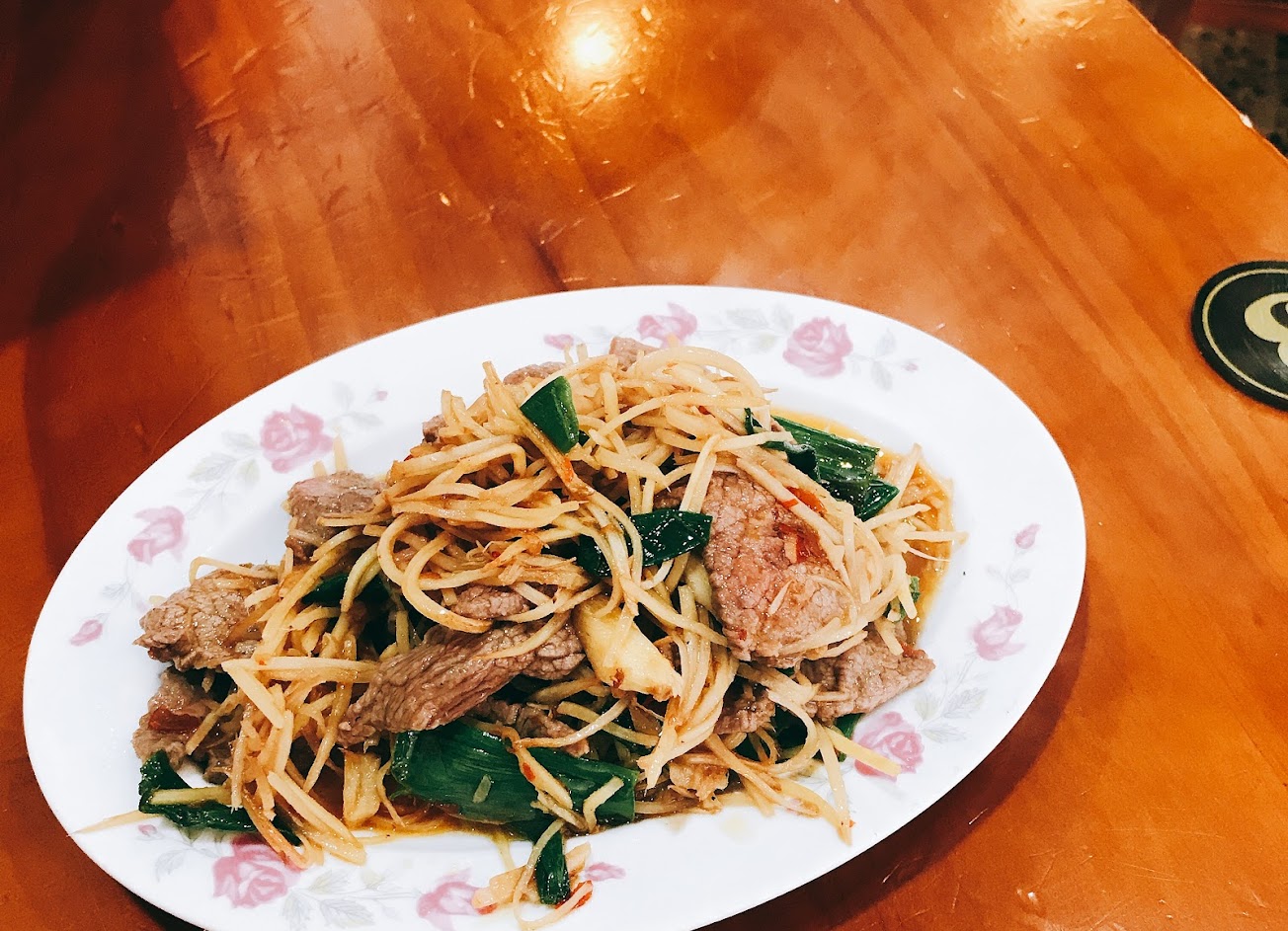 多樣的牛肉菜色,咖哩牛腰子搭配空心菜,很下飯,牛雜湯以及牛腩湯都很不錯,不過這次點的薑絲牛肉,牛肉卻只有幾片,美中不足;整體而言,偶爾可以去吃的店。