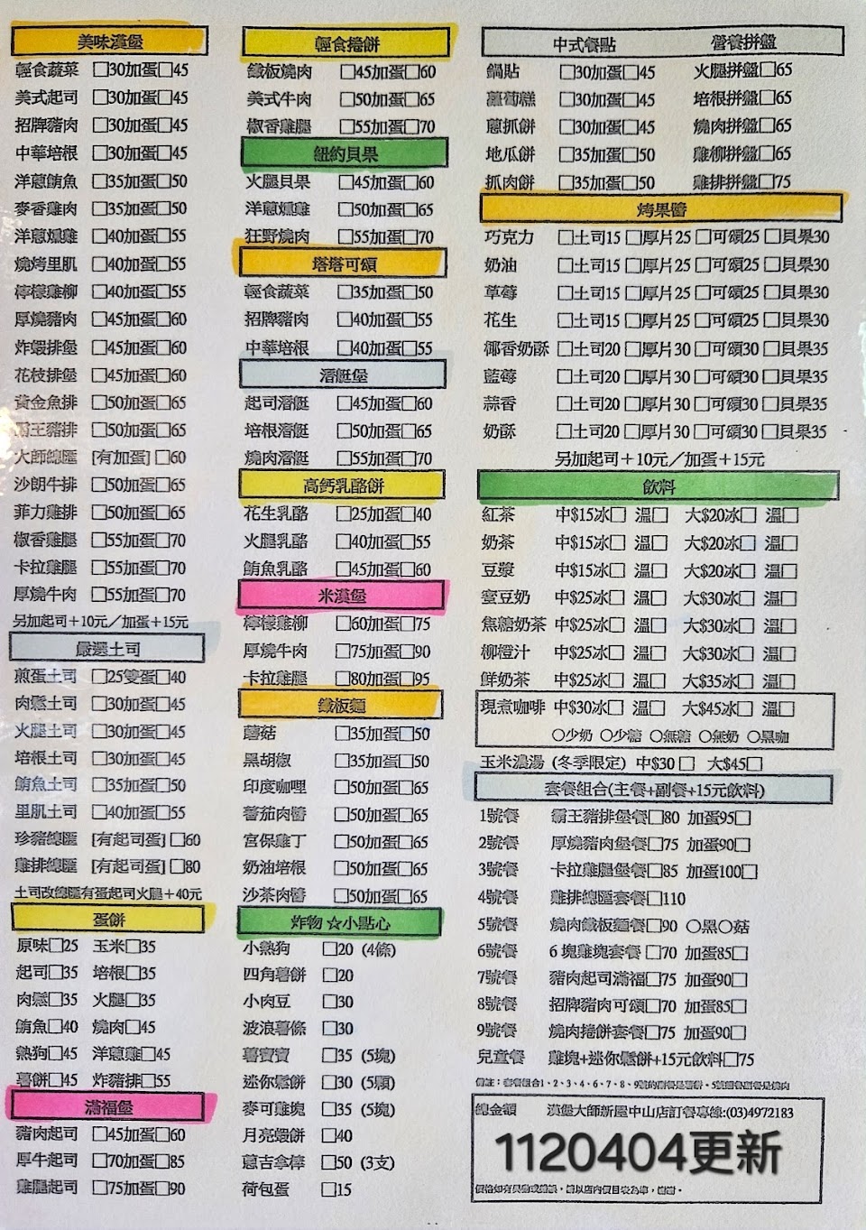 2024最新在地推薦餐廳的菜單_漢堡大師早午餐新屋中山店/蛋餅/鐵板麵/中西式早餐的菜單、圖片
