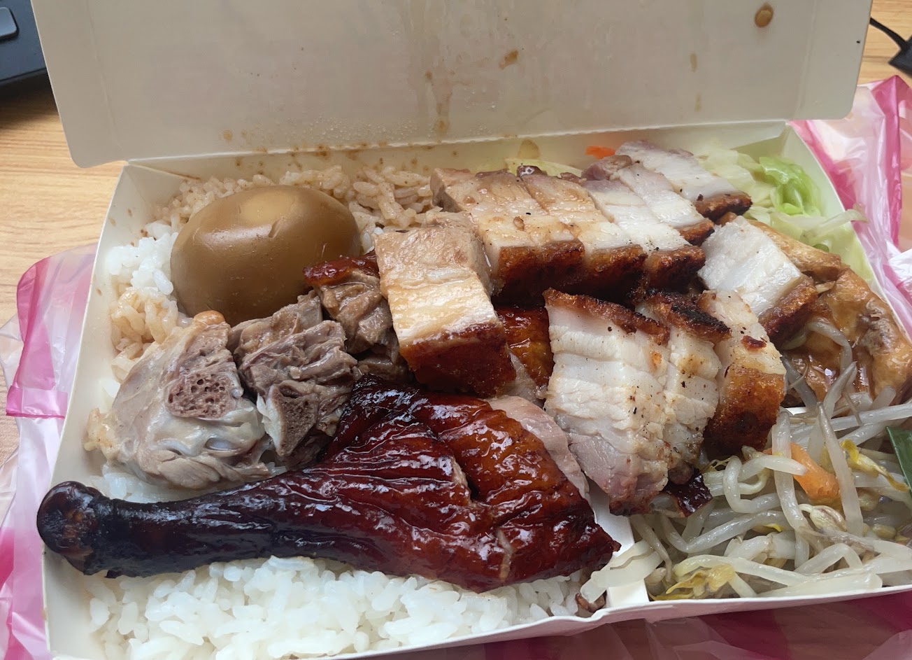 一般都是點頂級招牌飯。有三道自選菜,以及三種燒臘,一般是燒鴨燒臘及香腸。老闆還會加辣蘿蔔,一份110,這種份量及菜色算是可以接受的價格。口味也算是相當不錯。整體來說是實惠。