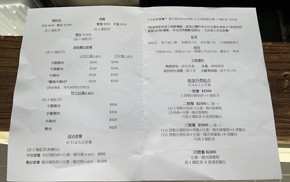 外國人老闆服務很好,最推牛胸肉,是真的好吃多汁又嫩,豬肋排的話個人覺得烤的稍微乾了點,不過味道很香,配菜一定要點醃黃瓜,解膩好吃,值得一嚐的好店?