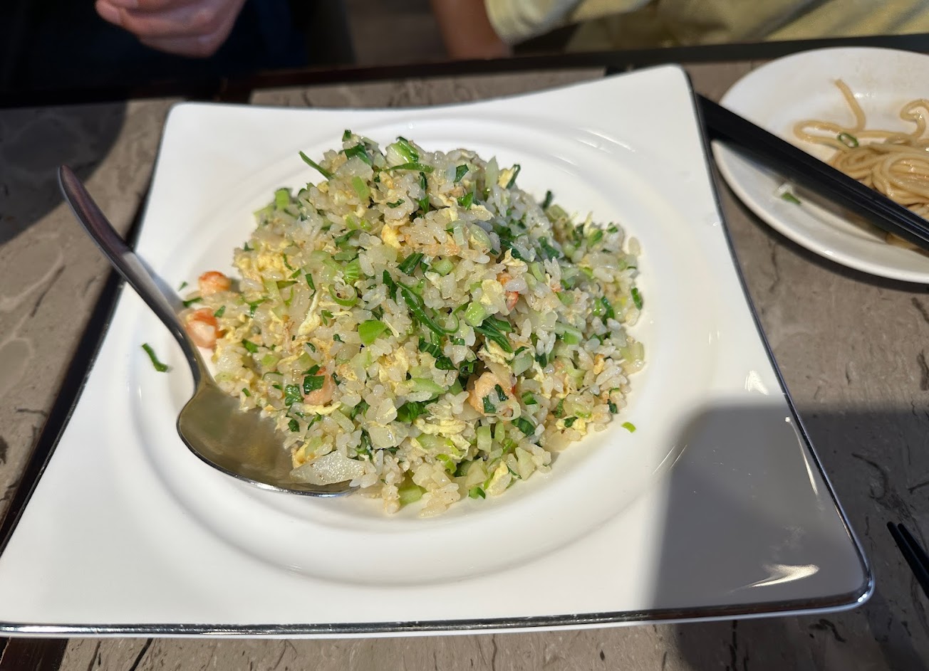 翡翠鮮蝦炒飯,飯粒分明,翡翠清脆,蝦子新鮮彈牙。
