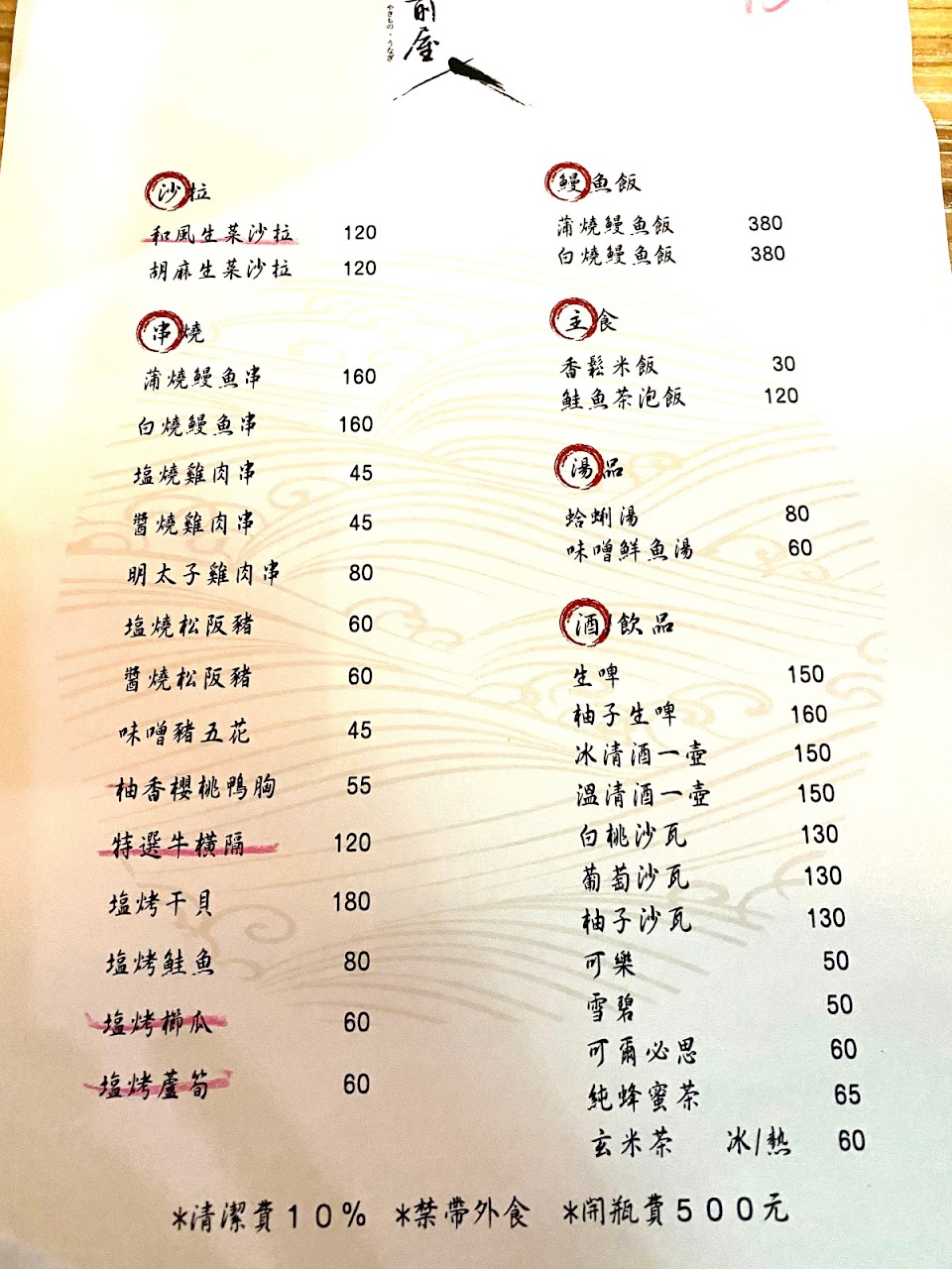 外帶只能帶鰻魚飯,其他的燒烤都不能外帶;如果其他品項都可以外帶會更好。