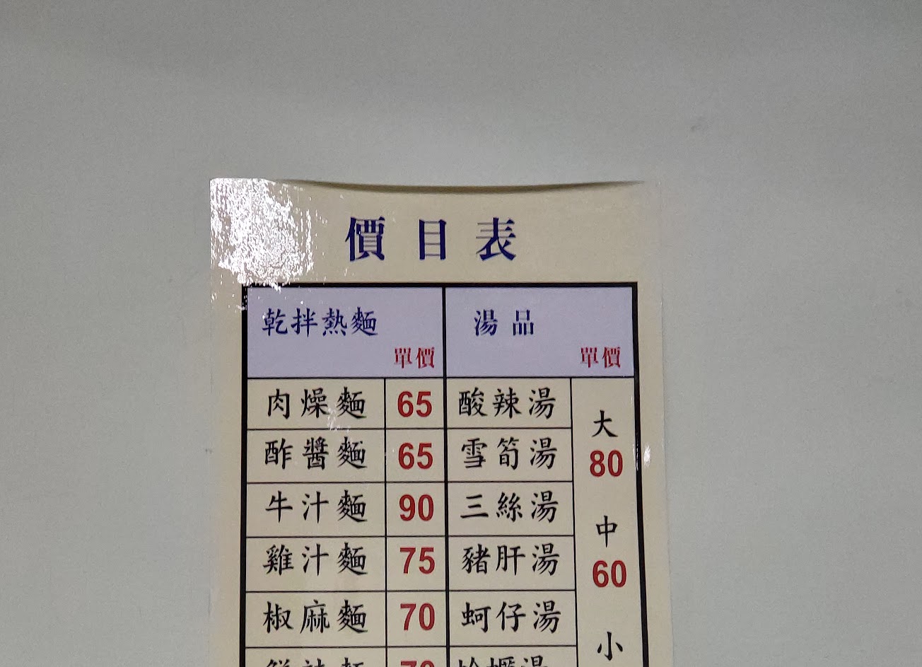 水餃好吃 個大肉餡鮮 但要一顆九塊 加上等很久 就只能說價格跟品質等號 但環境不佳應該要扣分的⋯ 肉燥麵一碗65 這肉燥切的超大塊的很狂 我真的覺得我在吃魯肉乾麵 也不會太鹹 滿足我中南人的胃 麵條粗的有口感煮的很剛好