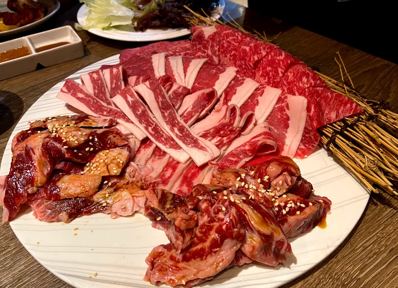 套餐式的燒肉,附有簡易自助吧提供蔬菜、飲料、熟食和霜淇淋。用餐時間只有90分鐘有點可惜,無法悠閒的享用。