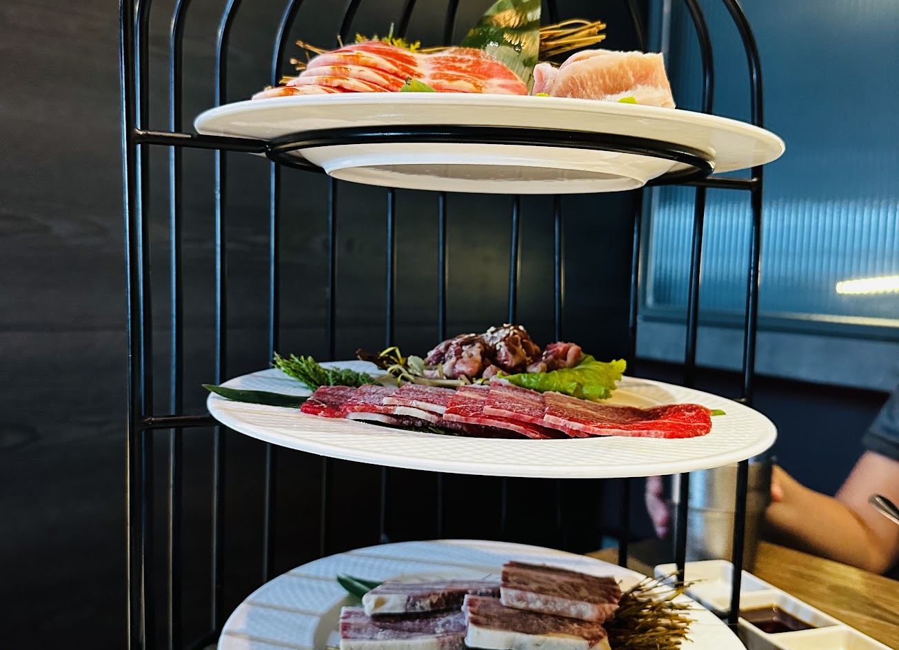 肉品份量很足,品質有符合價格,店員換烤網很及時。半自助區有飲品、沙冰、沙拉、咖里豬肉飯、甜湯、包肉生菜、泡菜、茶凍,算是很齊全的。生日有贈送一盤豬梅花。中午就餐限時2小時。