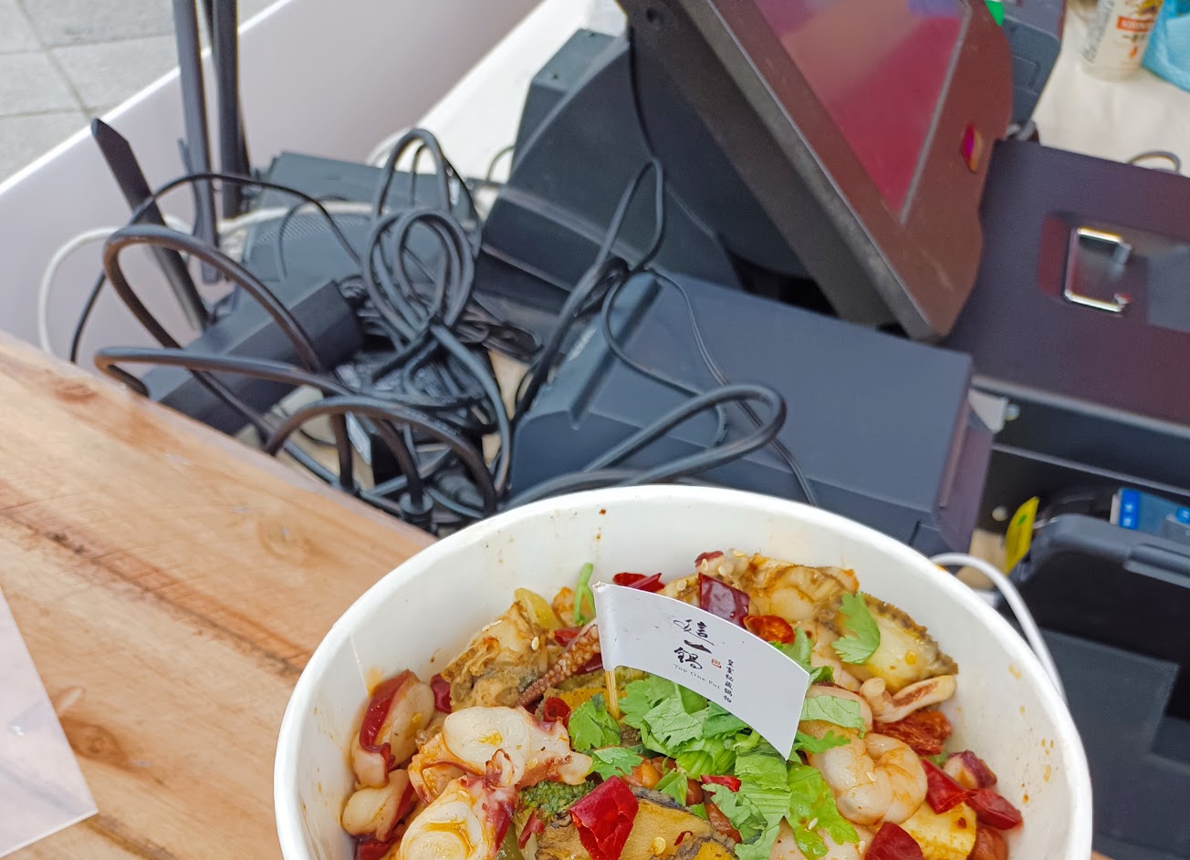 工作人員不太夠, 很多桌子要收拾, 這邊收好桌子, 同時也上菜, 手是帶手套, 不會覺得這樣不衛生,