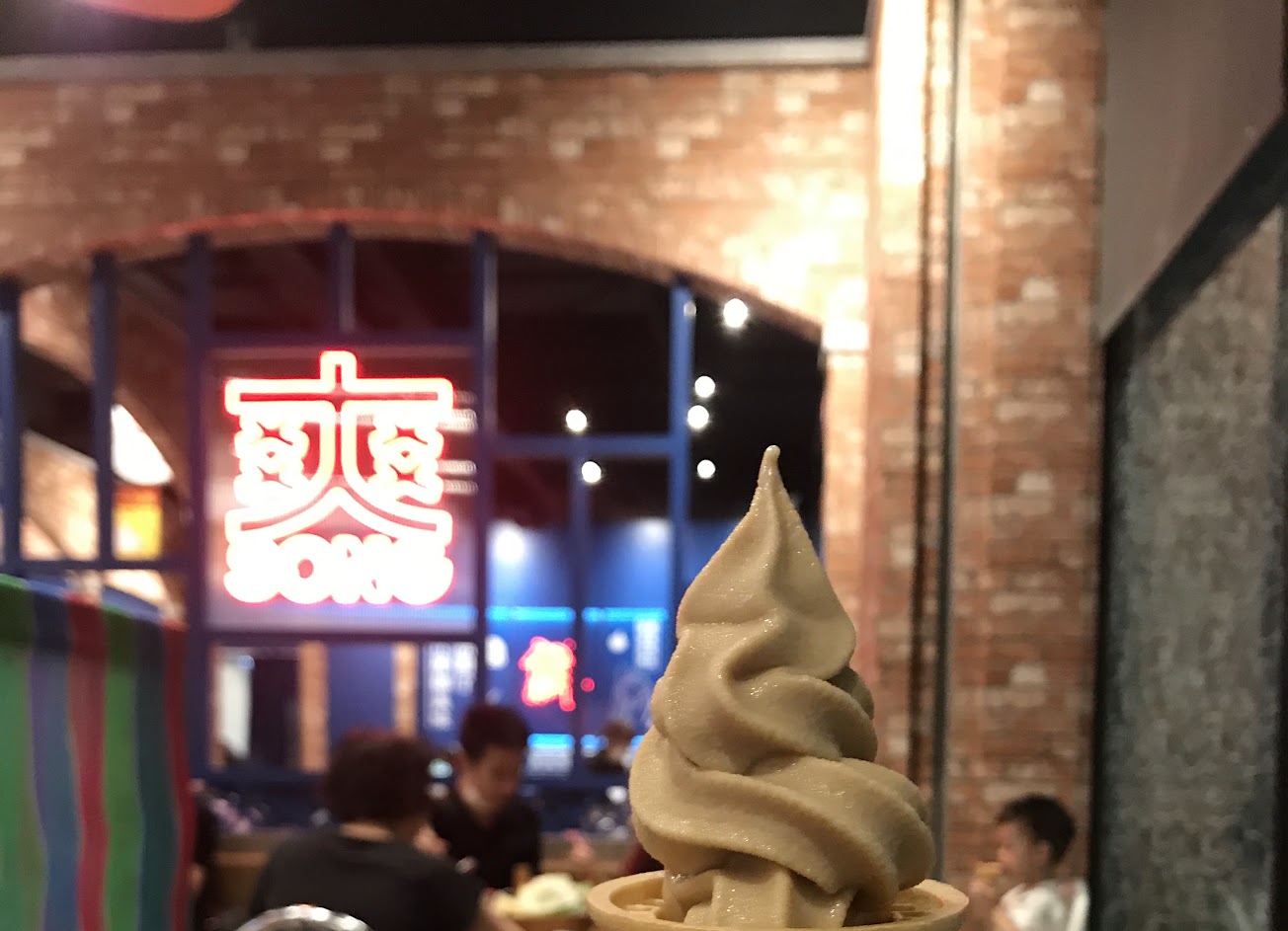 濃濃古早味,播放著老歌,吃著火鍋,很特別的是冰淇淋是麵茶口味