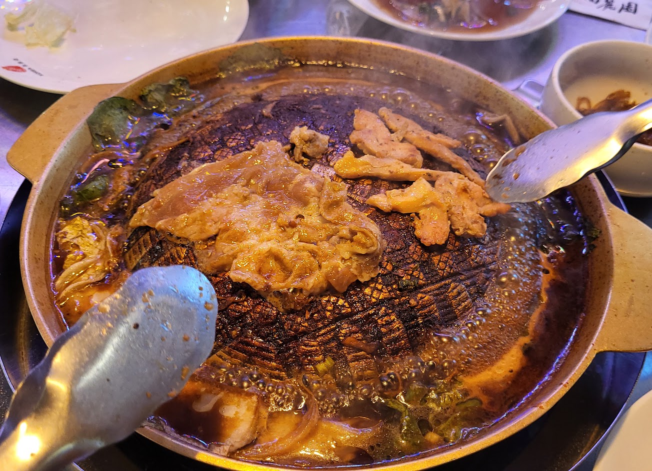 但缺點是銅盤烤肉即時用小火烤.烤盤還是容易會有燒焦,告知服務人員可不可以換烤盤,服務人員告知只能換一次…如果焦黑了用高湯淋烤盤⋯⋯
