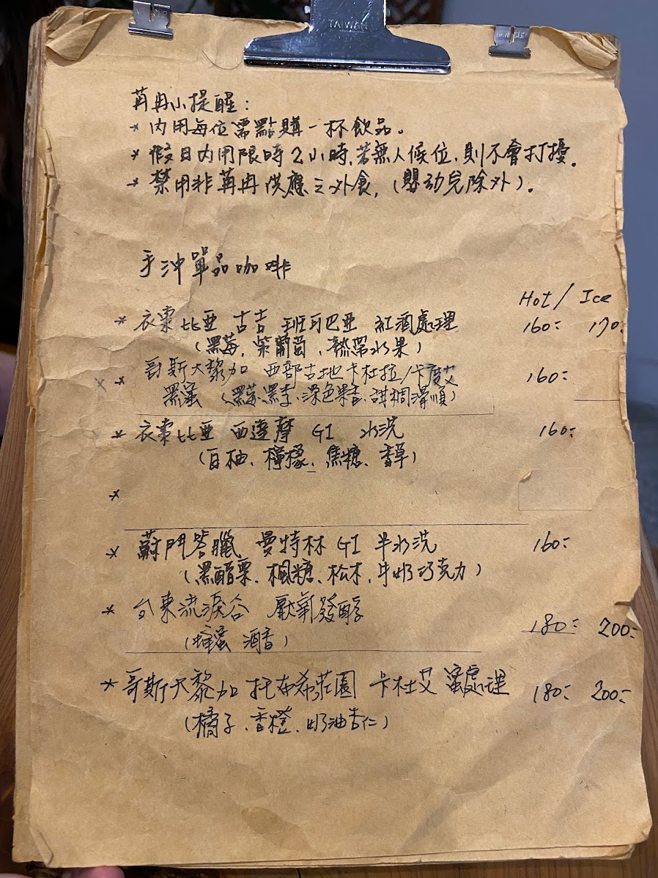 是一間覺得很舒服的店,一開店很快就會滿座,餐點也是很用心在做,幾乎每樣都好吃,咖啡種類也很多,最主要有賣手沖單品咖啡,這個更加分