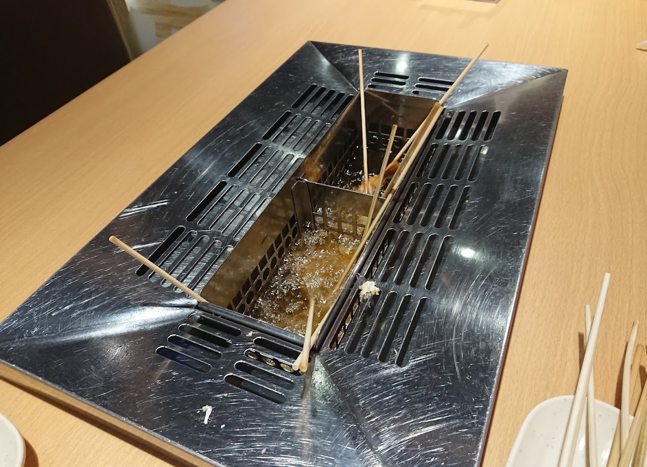 自己的串炸自己炸!很特別的體驗,而且食材不錯,還附漏斗幫助計時,滿貼心的!唯一小缺點是沒辦法把油煙更好吸走,吃完全身會有油煙味。