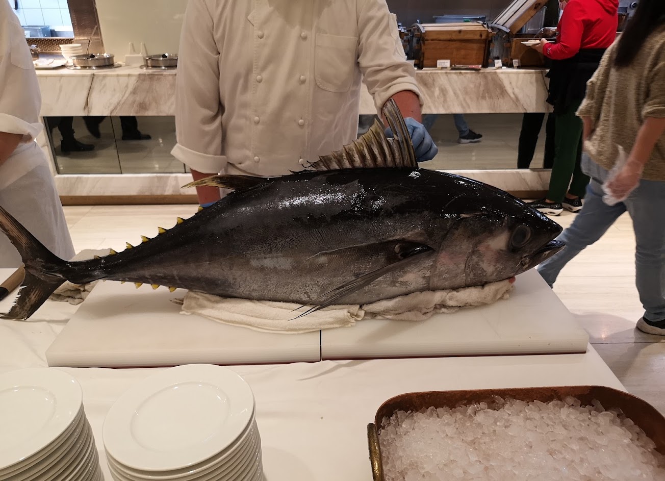 第一次吃到這麼糟糕的高價位吃到飽,品項少不說,入場後一堆餐點還沒備齊,生魚片區的人員很生疏做餐隨便,紅蟳跟龍蝦切半蒸完全糟蹋食物,變得乾柴,甜點區居然只有一個人負責三櫃,甜點也很難吃,冰淇淋、水果選擇少,食材料理也都普通沒什麼多元性,提供份量又少需要一直等,連茶包和咖啡機選擇都少到不行,倒是擺一堆早餐自助吧的麵包,唯一是服務人員收餐盤快速,態度不錯