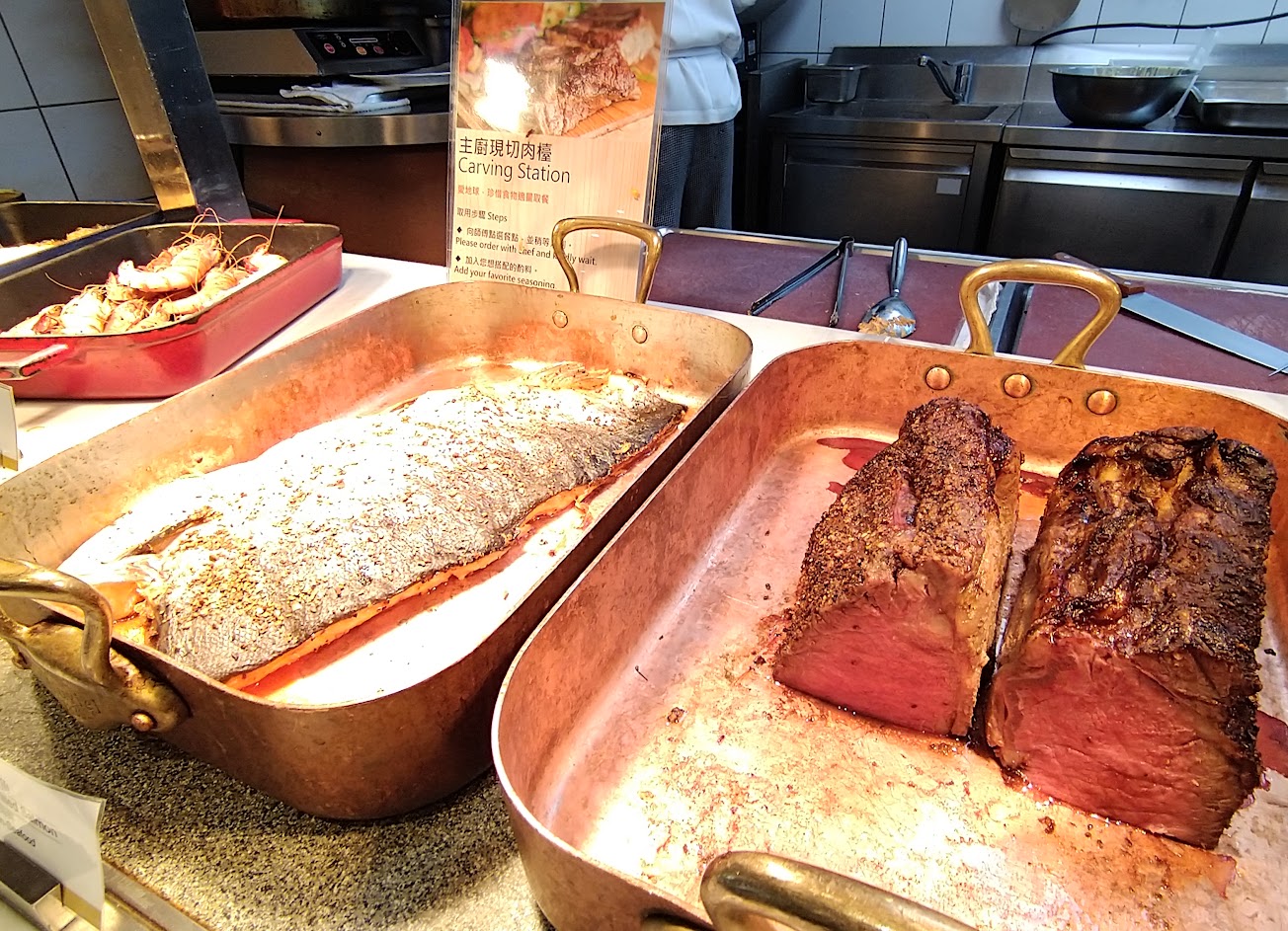 很難想像這裡是五星飯店的Buffet,原本以為當時這裡的特色是龍蝦吃到飽和干貝生蠔,後來自行體驗後才發現,這裡的招牌菜是一開始生蠔區和干貝區的臭臉女服務員,生蠔姐補生蠔是用丟的,而干貝姐有名到社團都在討論他們,一堆人受氣,有的怕繼續被口氣差,乾脆少吃點干貝了,這樣飯店也省錢是吧?不過吃到後期甜點和生蠔服務員換人,感受好多了。