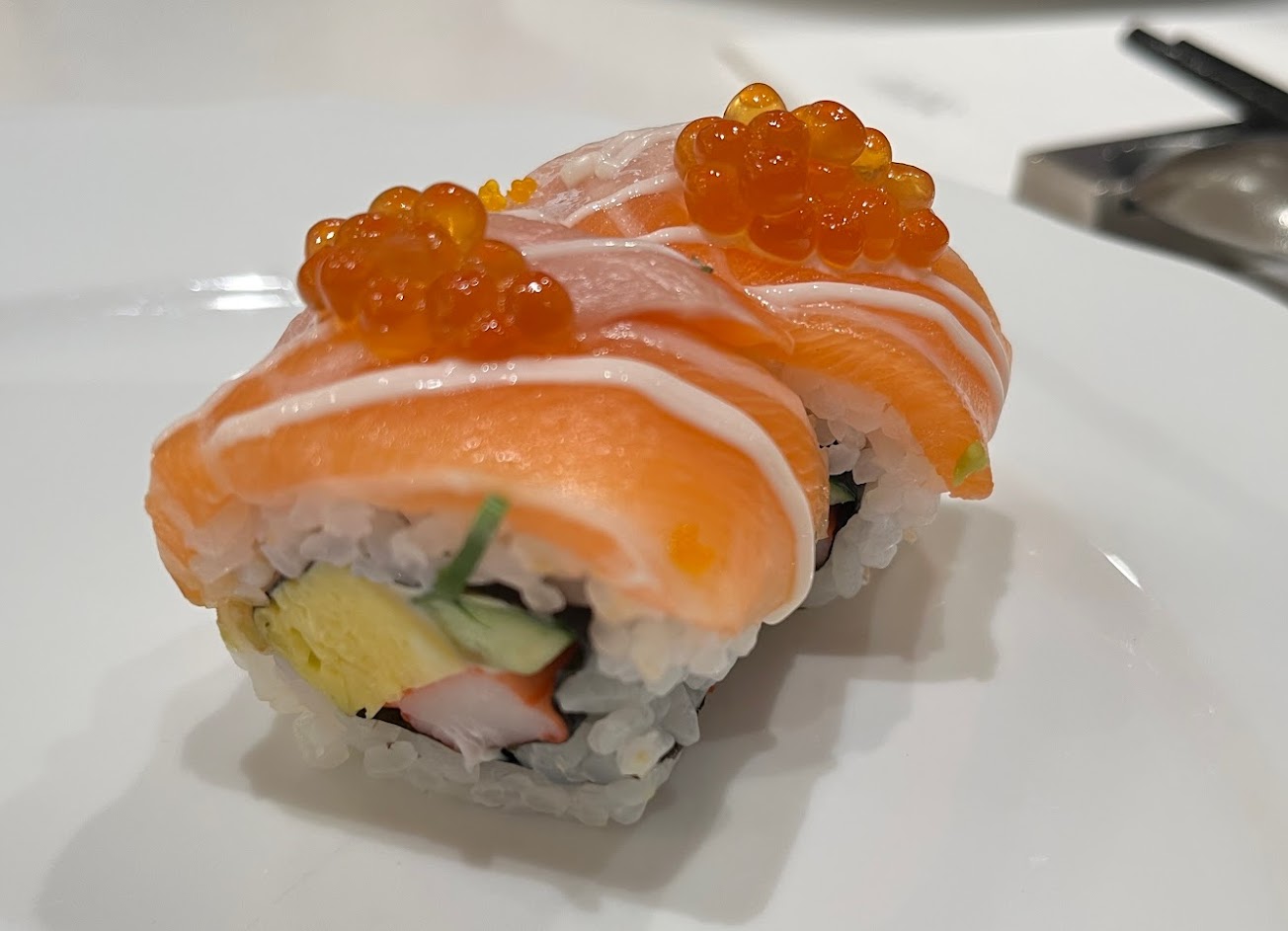 其中最讓人無法接受的是:切生魚片的師傅要同時負責切生魚片跟拿取蛋糕、冰淇淋,有點讓人擔心。(又不小心讓我看到生魚片師傅們在交換崗位時,立刻拿出手機在滑)