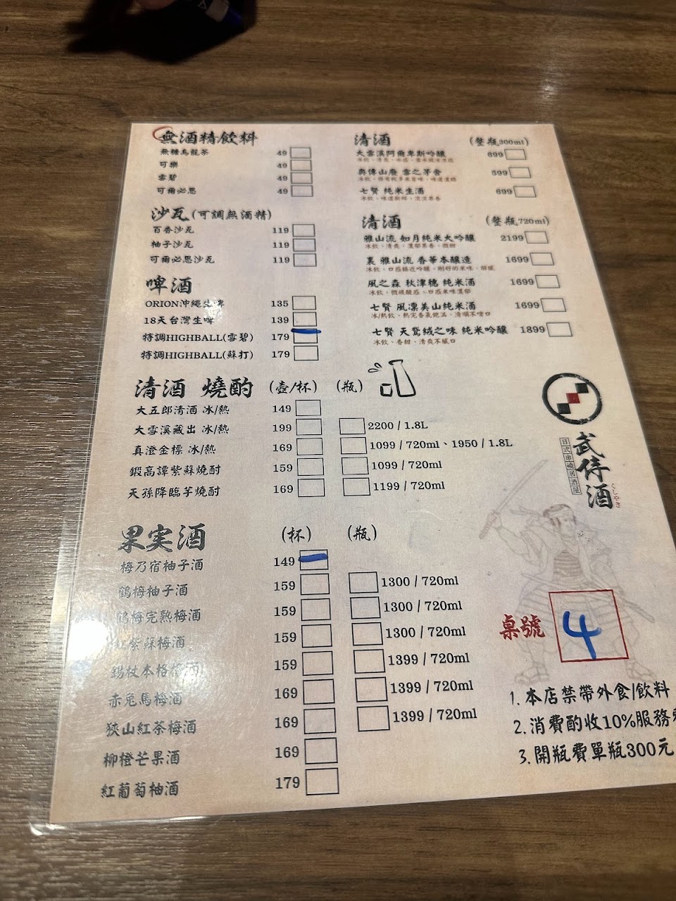 2024最新在地推薦餐廳的菜單_武侍酒 日式居酒屋的菜單、圖片