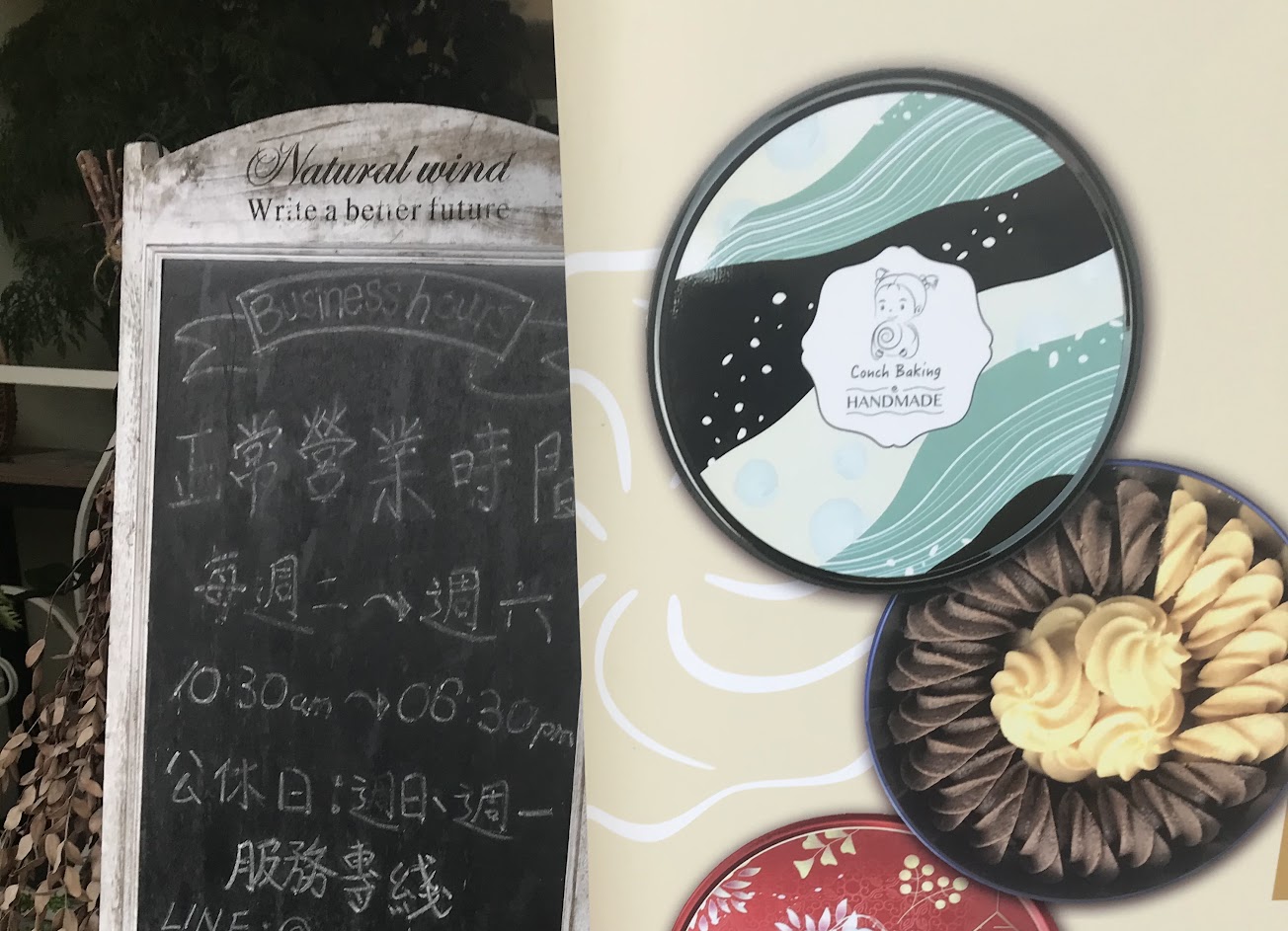 Conch Baking 手作餅乾烘焙屋隱藏在巷弄當中,店外簡潔低調、店內乾淨整潔。海螺曲奇餅(奶油、咖啡、巧克力、抹茶)更是人氣商品!