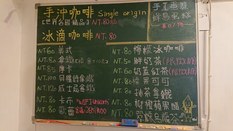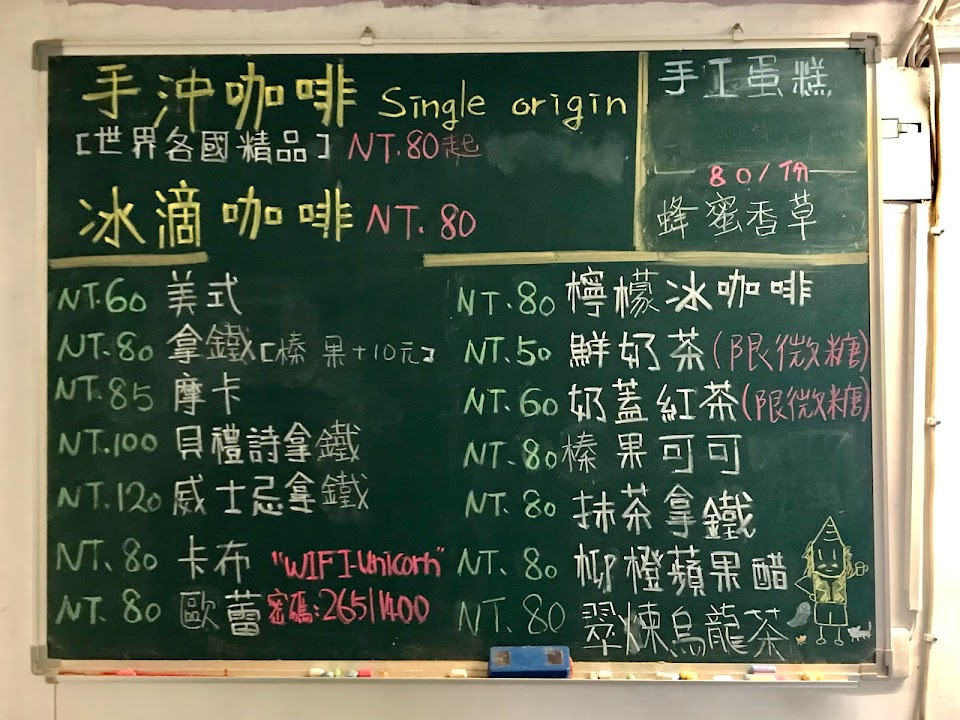 雖是 店面很小的手沖咖啡廳,但手藝跟店內坪數呈反比,而且還有一隻可愛的店貓駐守,愛手沖咖啡的愛好者,可以來品嚐看看老闆的手藝喔~老闆是”有牌”的喔~老闆自己也有開課,想要更了解手沖咖啡的朋友 也可以報名喔~但還是先確定老闆手藝有沒合格再說喔~