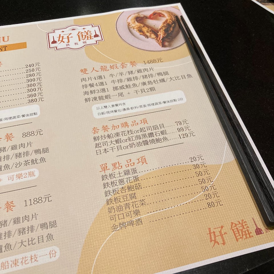 不論點什麼套餐都有無限續的白飯和熱湯,還有松露蒸蛋、餐包、可樂與冰棒,蠻豐富的。 這次點的三道主菜中最推鯖魚,肉質鮮美多汁,擠上檸檬汁能解膩提味,黑胡椒牛肉不知道為什麼調味會偏甜,肉片也都很碎沒什麼口感,最失望的是香蒜雞排,即使在鐵板上將表皮煎的焦香也吃得出肉質不怎麼樣,完全沒有肉汁,肉很韌很硬不好咬,而且還有一點雞肉的腥騷味,算是我吃過的鐵板燒料理裡最不好入口的雞排了。青菜的表現就是一般水準,份量不少,小辣其實就一點點辣而已,最後的冰棒有巧克力、紅豆牛奶、布丁等口味可以選,是簡單好吃的小甜點。 整體而言,餐點平均下來其實只有三顆星,但品項還算豐富而且價格也沒有太高,加上我是很容易被甜點收買的人哈哈哈哈,只要點對料理就還是一間不錯的餐廳ʕ •ᴥ•ʔ 服務 內用 餐點類型 晚餐 平均每人消費金額 $400-600