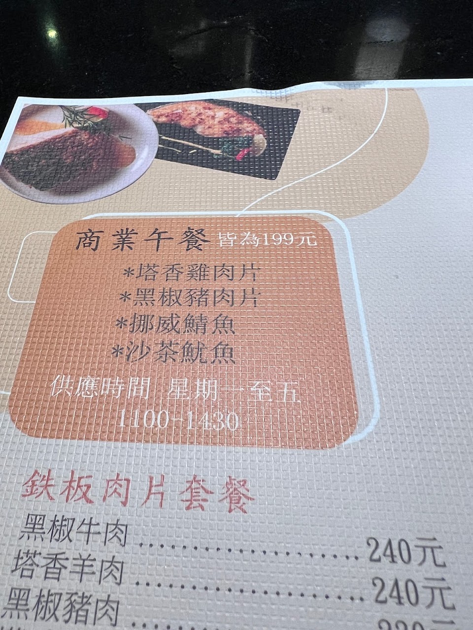 主餐以外的附餐種類多,有松露蒸蛋、餐包、無糖麥茶、海帶蛋花湯,餐後還可自取冰棒1隻,炒青菜有奶油香,還不錯~主餐黑胡椒豬肉,可惜肉質不佳;加點的魚排沒有太多調味,香度沒有出來,整體表現普通~算是平價可吃到多樣餐點的鐵板燒! 餐點:3 服務:3 氣氛:3