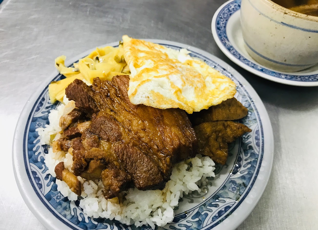 好吃上菜快速 有南部味道的小吃攤 俗又大碗 台北難得一見的宵夜場 控肉飯三菜一蛋一控肉 超飽足