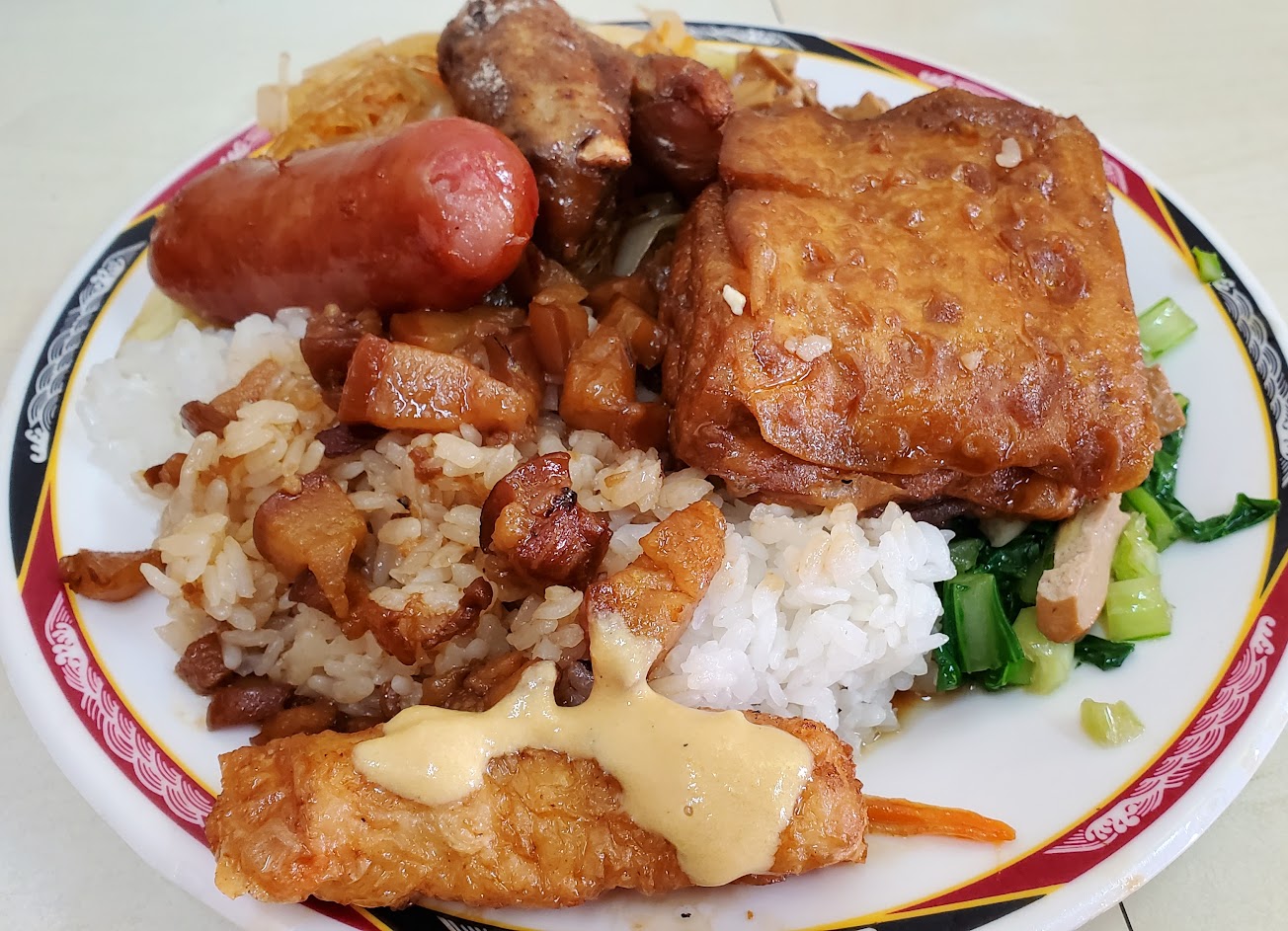 此間環境不優 配菜普通,但是滷汁飯粒蝦捲都很棒 吸引我一次次的回訪 每次都排隊外帶….